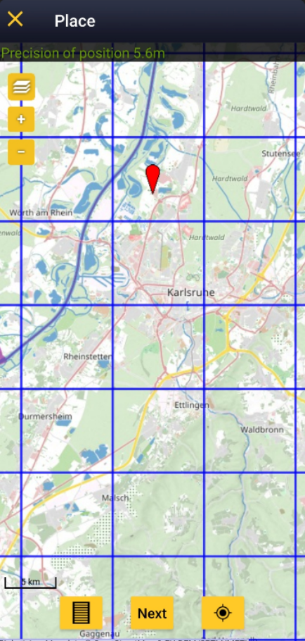 - The precision of your GPS is always indicated in the top left corner (see image Navigating the map at the top of the page).