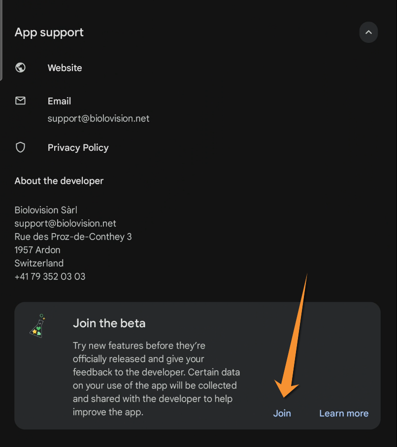 · Use link https://play.google.com/apps/testing/ch.biolovision.naturalist to check if you are currently a beta tester. If are, you will be offered to leave. Otherwise, you will be offered to join.