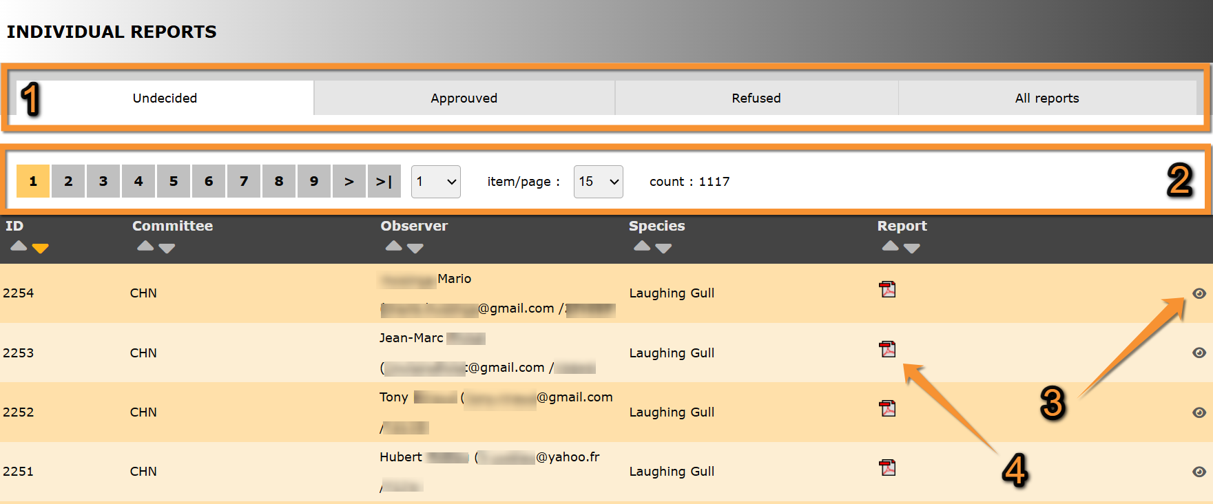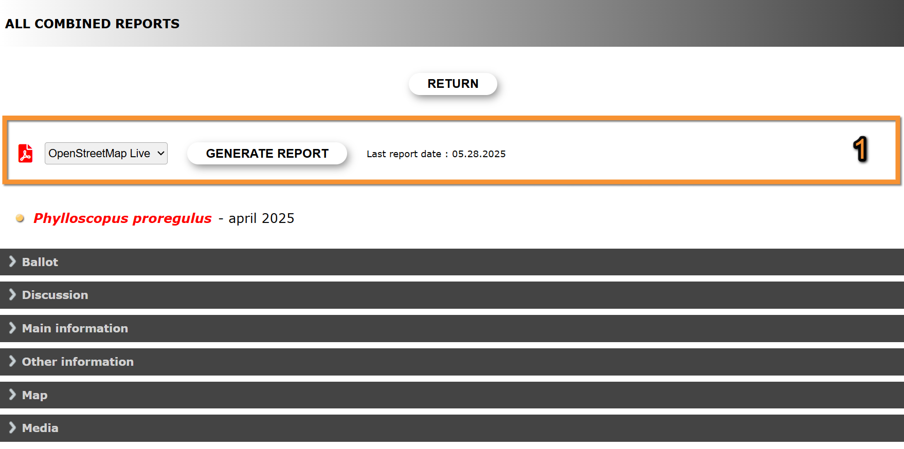If a report for the sighting has already been created, the date and time of latest report is shown on the right.