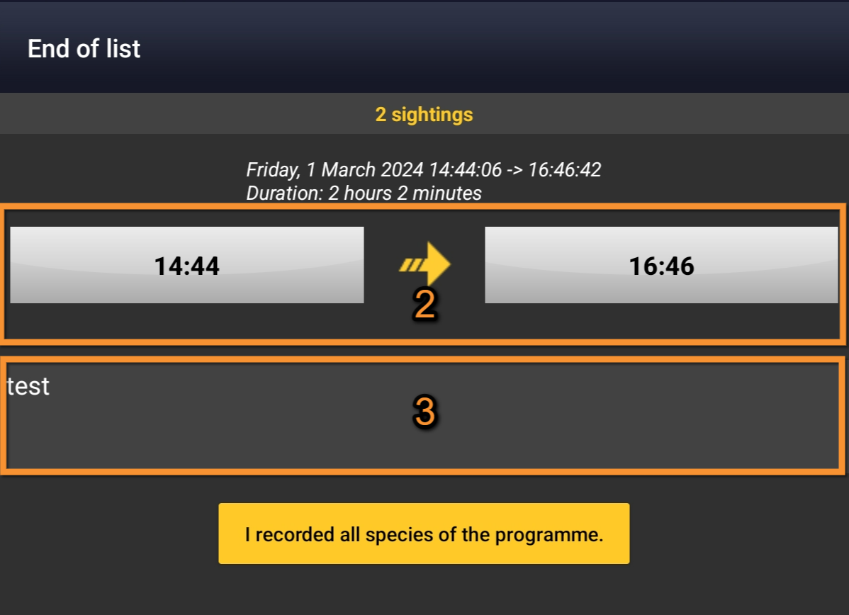 When done, click I recorded all species of the programe.
