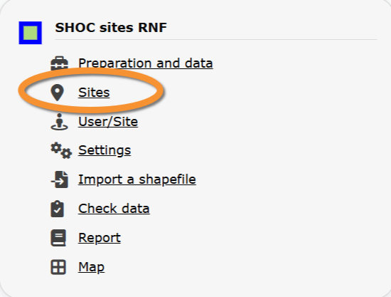 through Menu > Administration > Protocol administration > SHOC Sites RNF > Sites> +NEW button