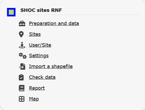 Both users and administrators can create a new site. Visit wiki section Web interface > Local portal > Protocols > SHOC Sites RNF > Selection of study site.