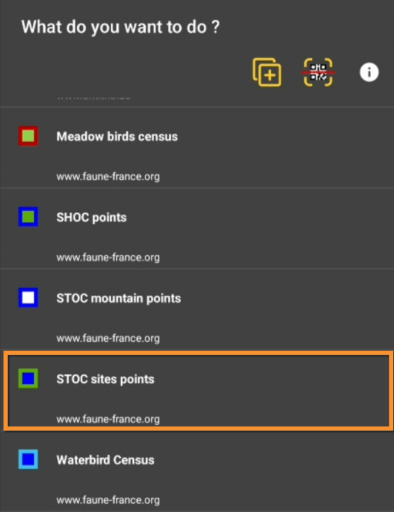 Choose the site you want to count at as explained in wiki section Mobile interface > Protocols > Enter data.