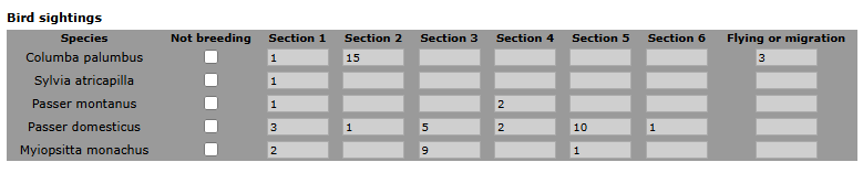 | Add observations Add further observations to this site or any other as described in wiki section Web interface > Protocols > Preparation and data > Add observations. |