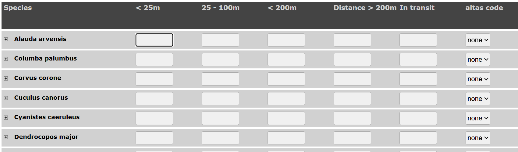 Add a new entry to the selected visit. Enter information as for a list. See wiki section Web interface > Submitting records > Step 3/3: Submit my sighting > As if accessed from a list > List section.