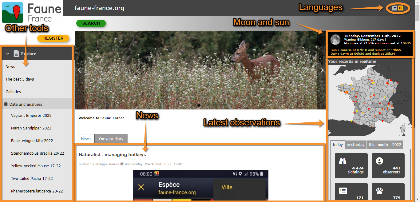 Image 1. Example of main interface as shown in Fauna-France portal.