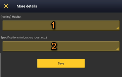 When done, click '''Save'''. It will take you to the '''Place''' screen to continue entering observations. | When done, click '''Save'''. It will take you to the '''Place''' screen to continue entering observations. | ||