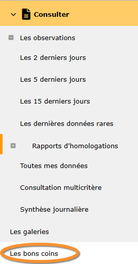 · Access the map at Menu > Consulting > Les bons coins.