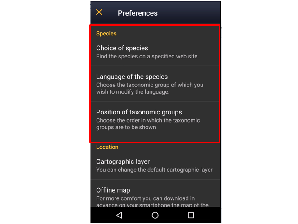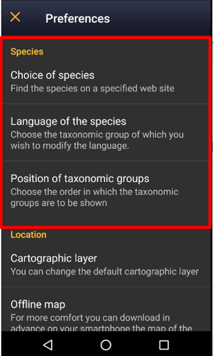 menu species