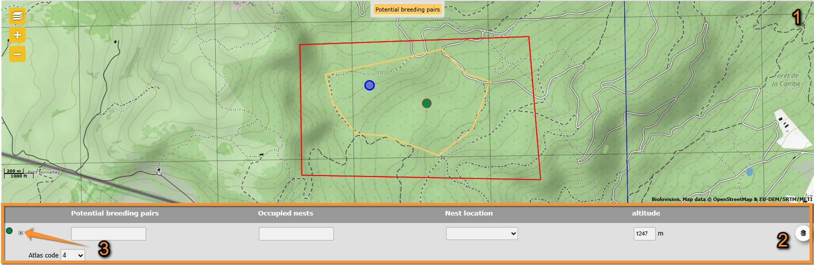 1. Position the observation on the map. Each sighting is indicated with a different point colour.