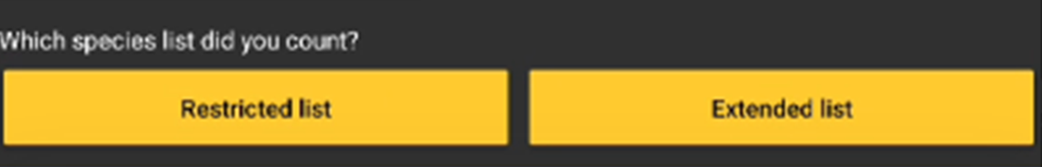 Note this information applies to the last point you surveyed at. To continue entering observations to other points, go back to step Start of list and repeat the process to all points. A yellow notification will appear on top of the main screen, a reminder of an unfinished protocol. Access subsequent points by either clicking on the "+" symbol at the bottom left, or on the reminder at the top.